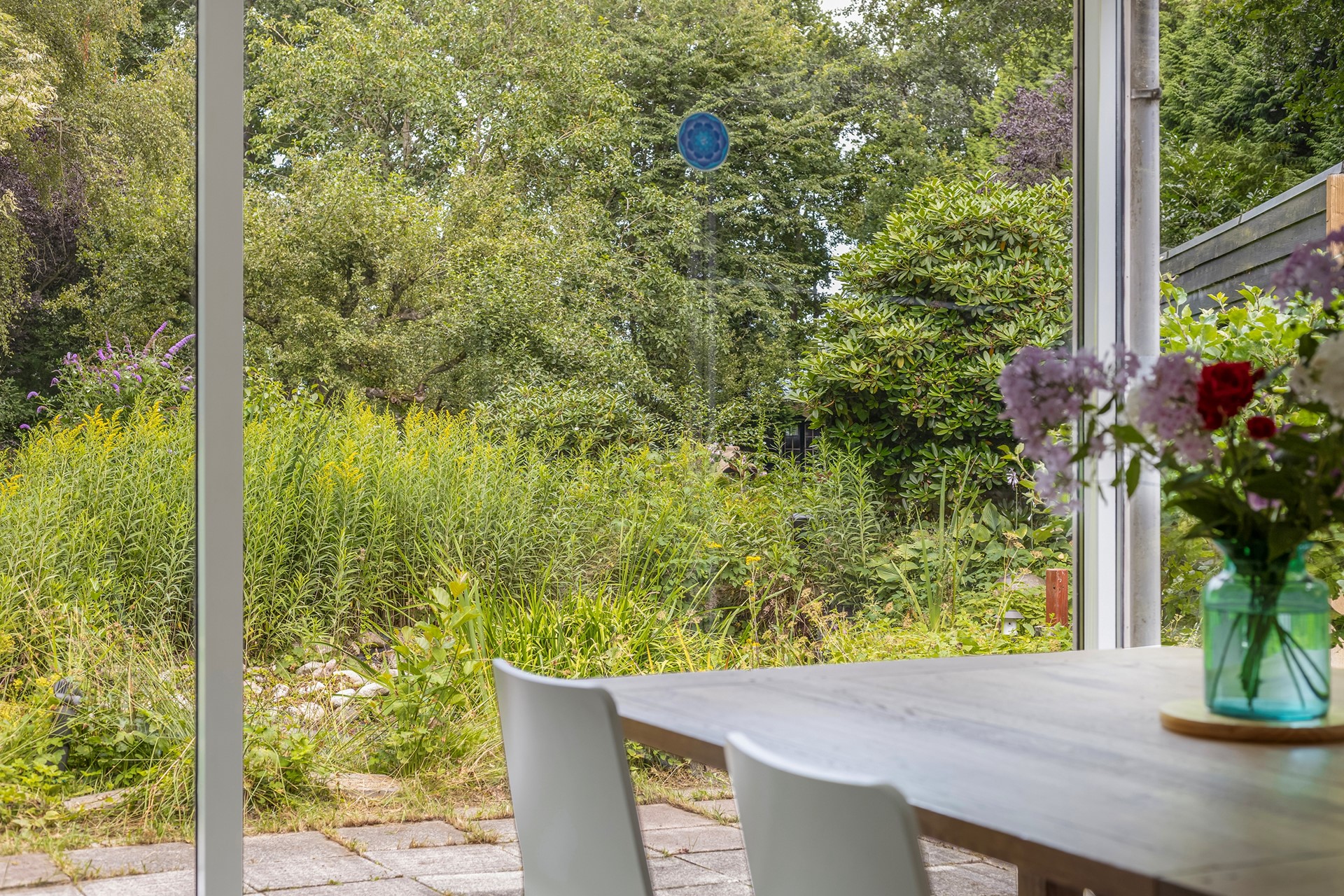 In de tuin zijn een houtopslag, vijver incl. op afstand bedienbare verlichting, kas, fruitbomen, tuinhuis, houten berging (2023) en fraaie hoekjes aanwezig.