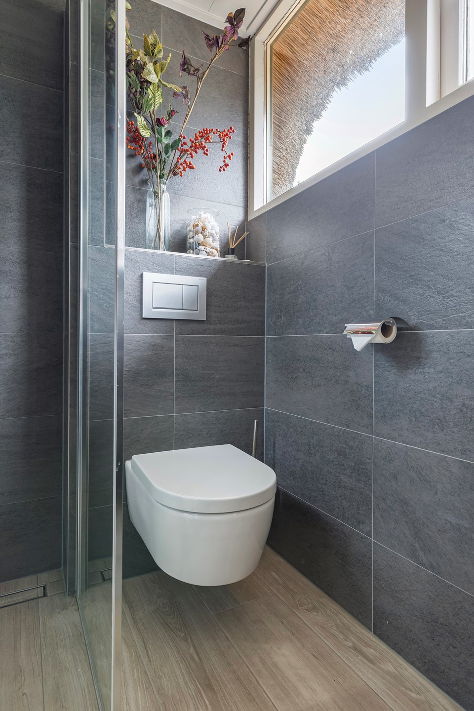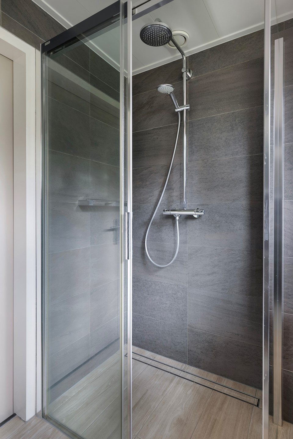 - moderne badkamer v.v. inloopdouche, zwevend toilet en badmeubel