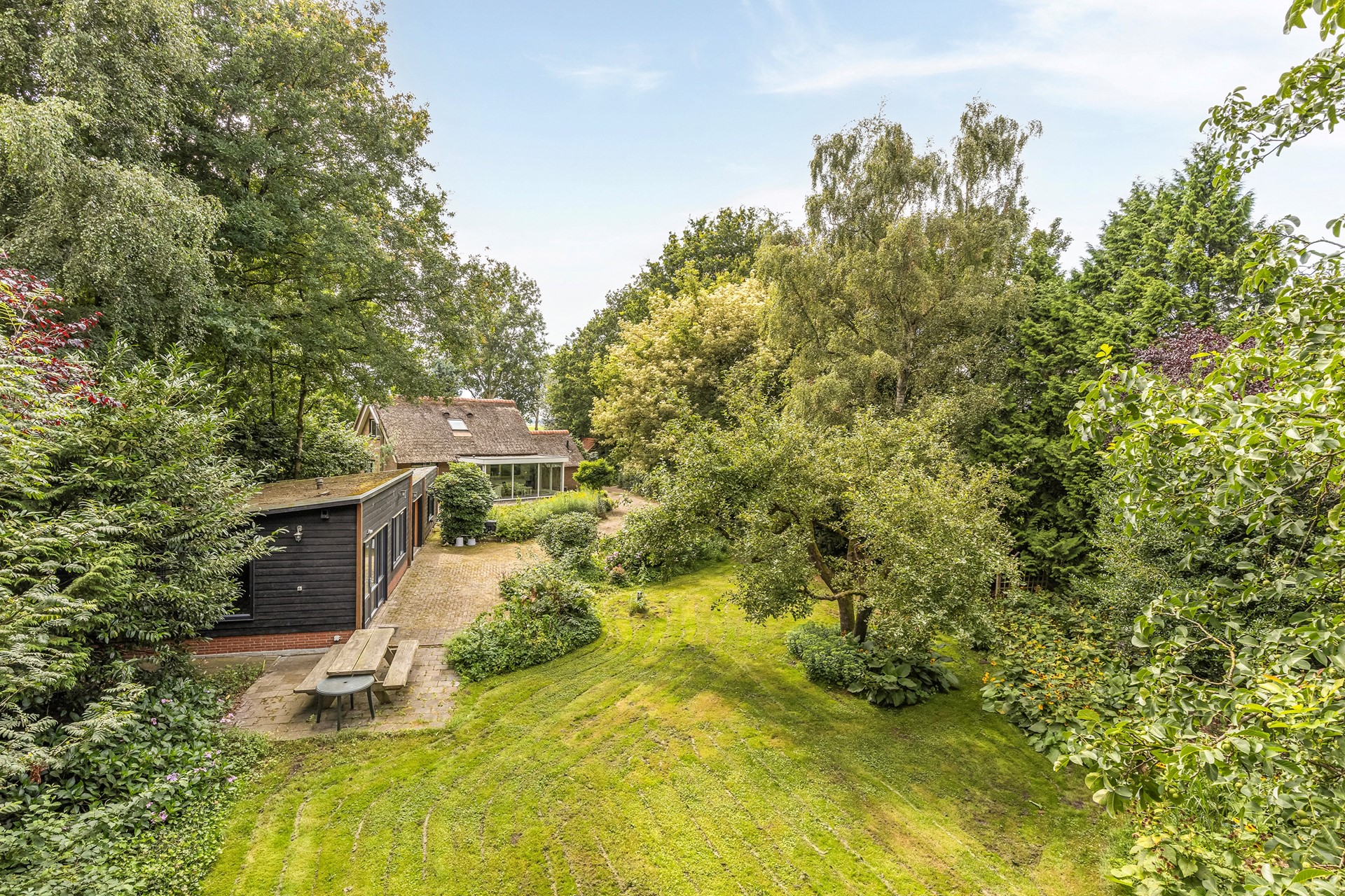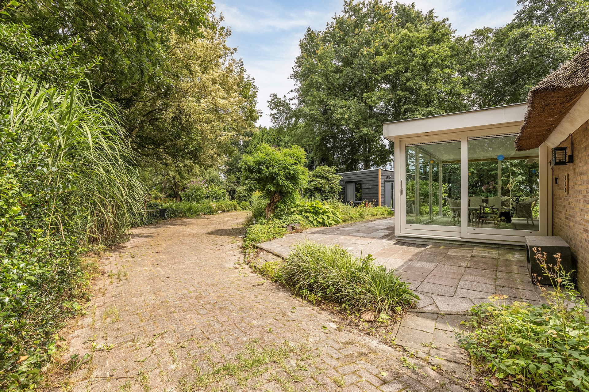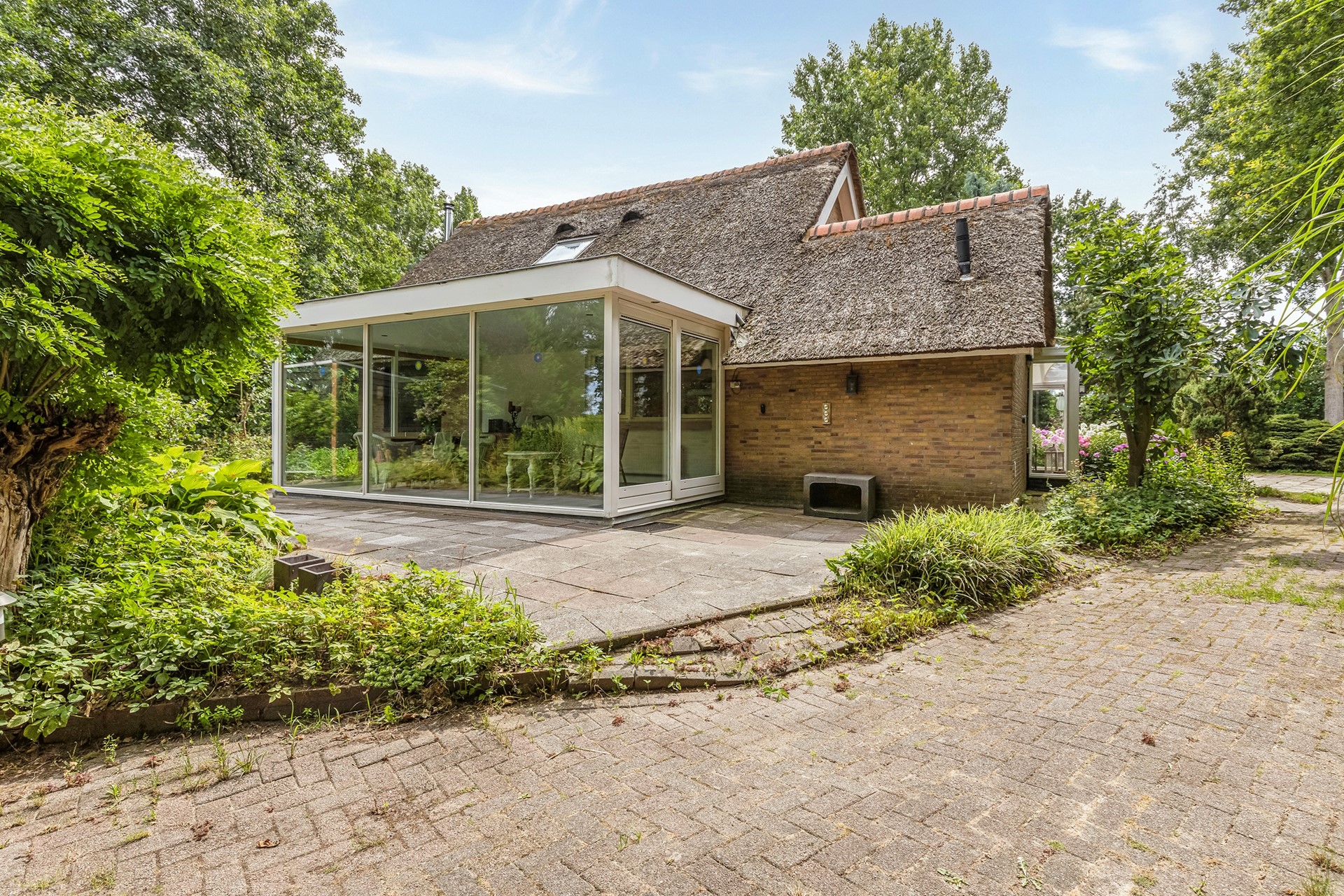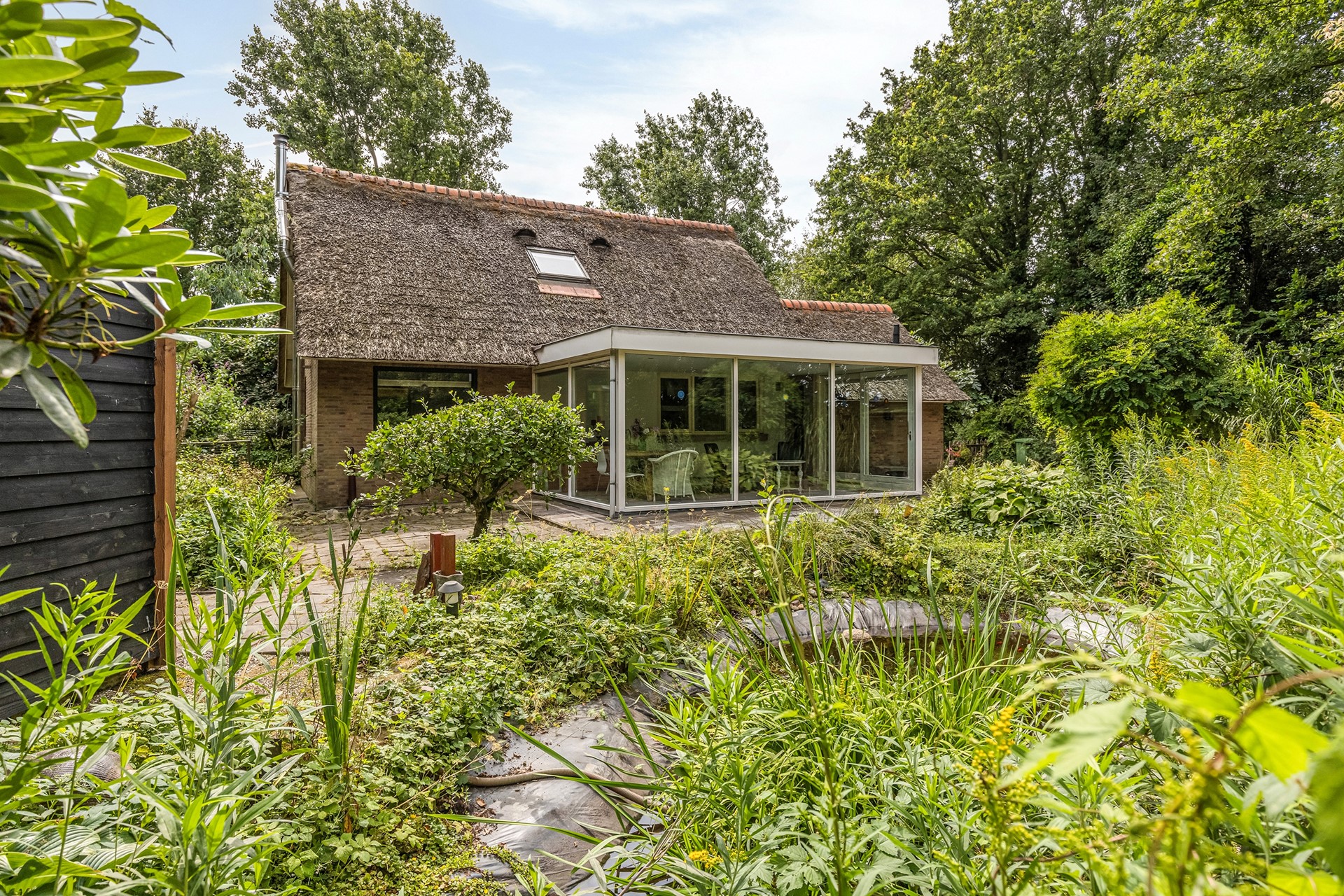 Deel van de rieten kap behoeft onderhoud binnen 2 à 3 jaar (offerte aanwezig).