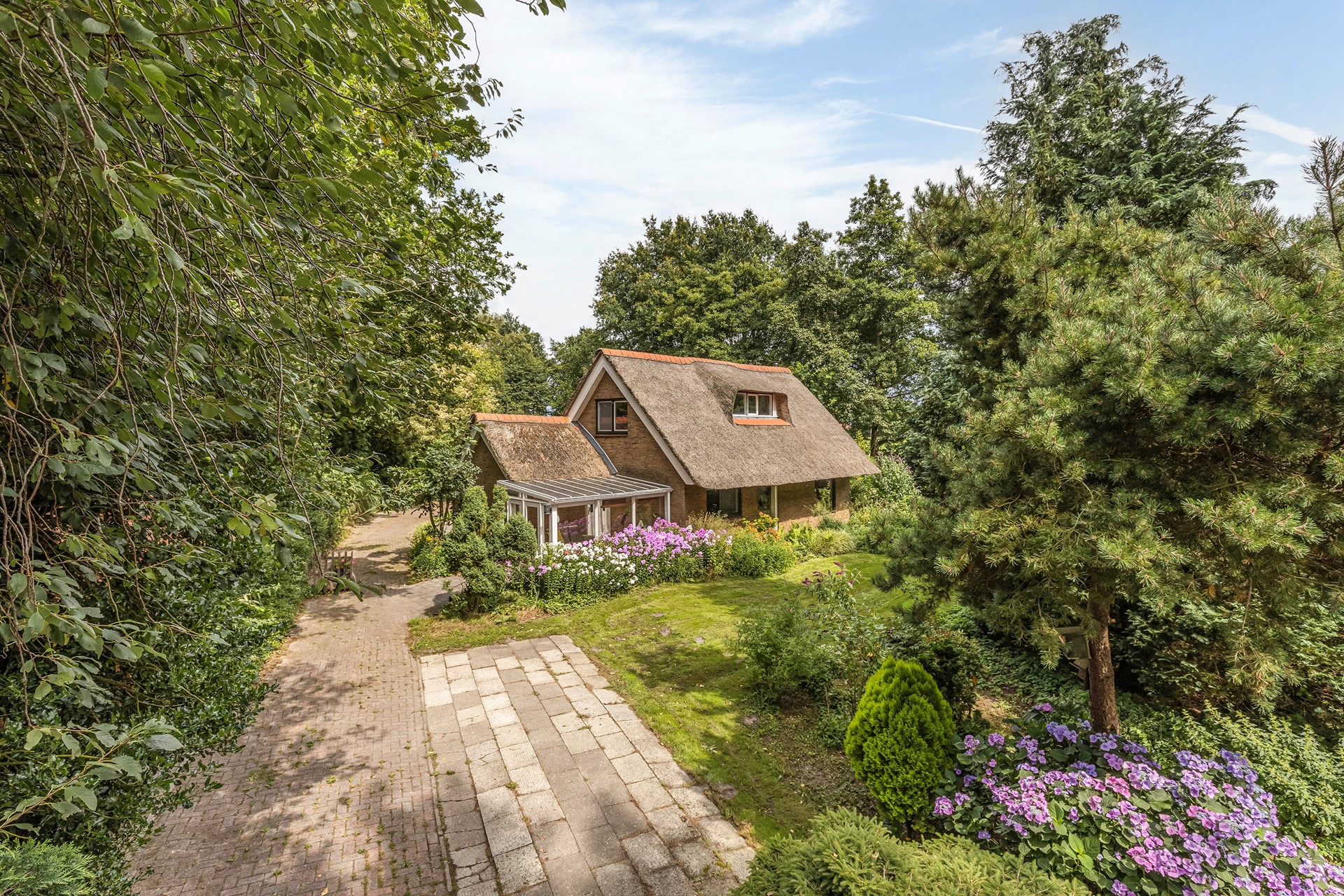 Prachtig gelegen rietgedekte vrijstaande woning met royale oprit, multifunctioneel bijgebouw (88 m2), kapschuur met ruimte voor twee auto's, houten tuinhuis, grote kas en houten berging op een royale kavel van 3071 m2. Het geheel ligt op een schitterende landelijke locatie met rondom vrij uitzicht en heeft een fraaie tuin die maximale privacy biedt. Ondanks de rustige ligging in een landelijke omgeving zijn alle noodzakelijke voorzieningen op korte afstand bereikbaar.