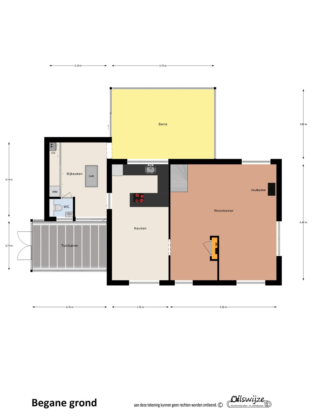 Kruipruimte aanwezig onder de gehele woning (behalve serre en tuinkamer), hoogte ca. 1.50 m.