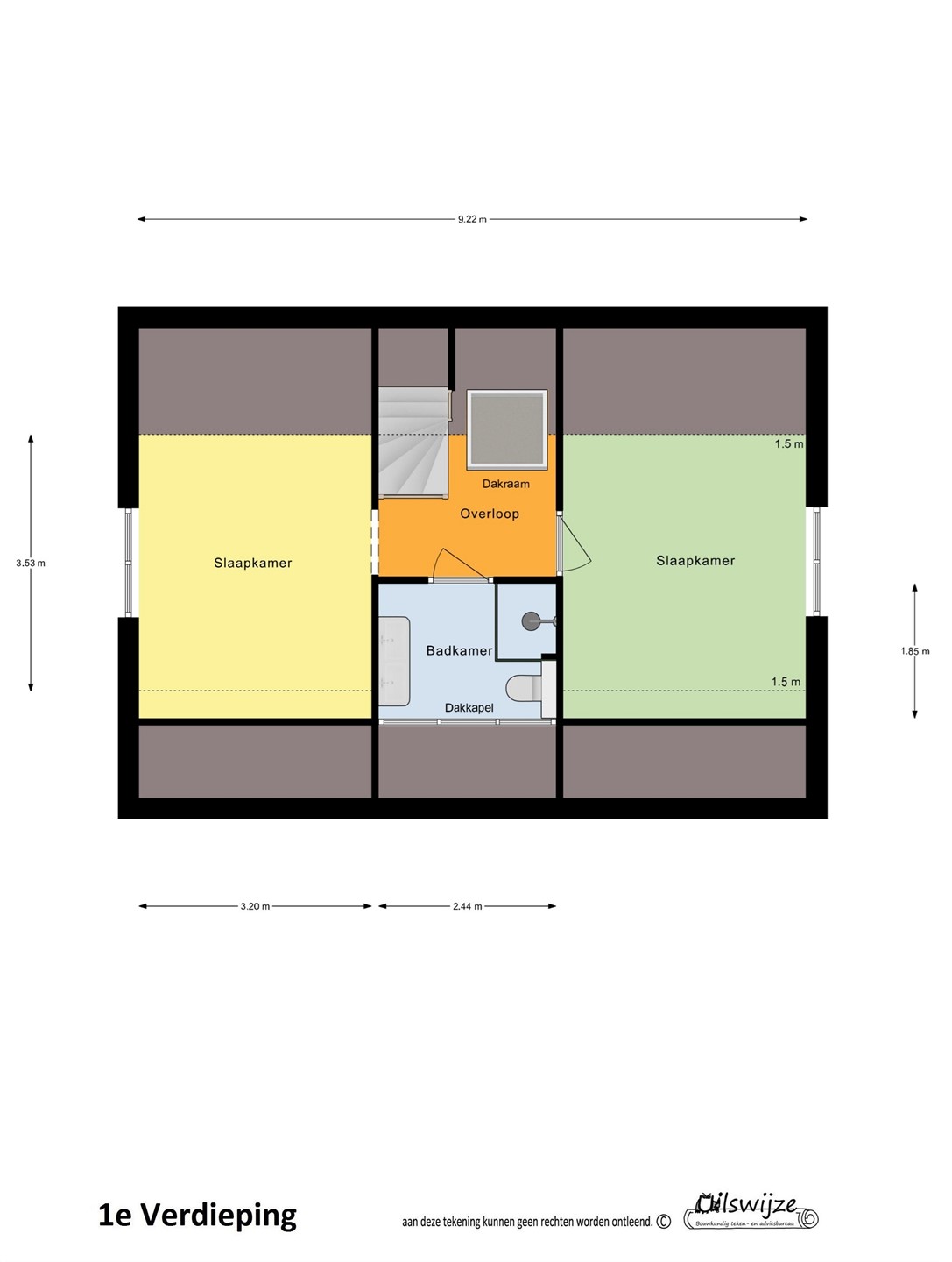 Overloop v.v. dakraam, slaapkamer 1, moderne badkamer (2019) met extra brede doucheruimte, 2e zwevend toilet, dubbel wastafelmeubel en vloerverwarming, slaapkamer 2