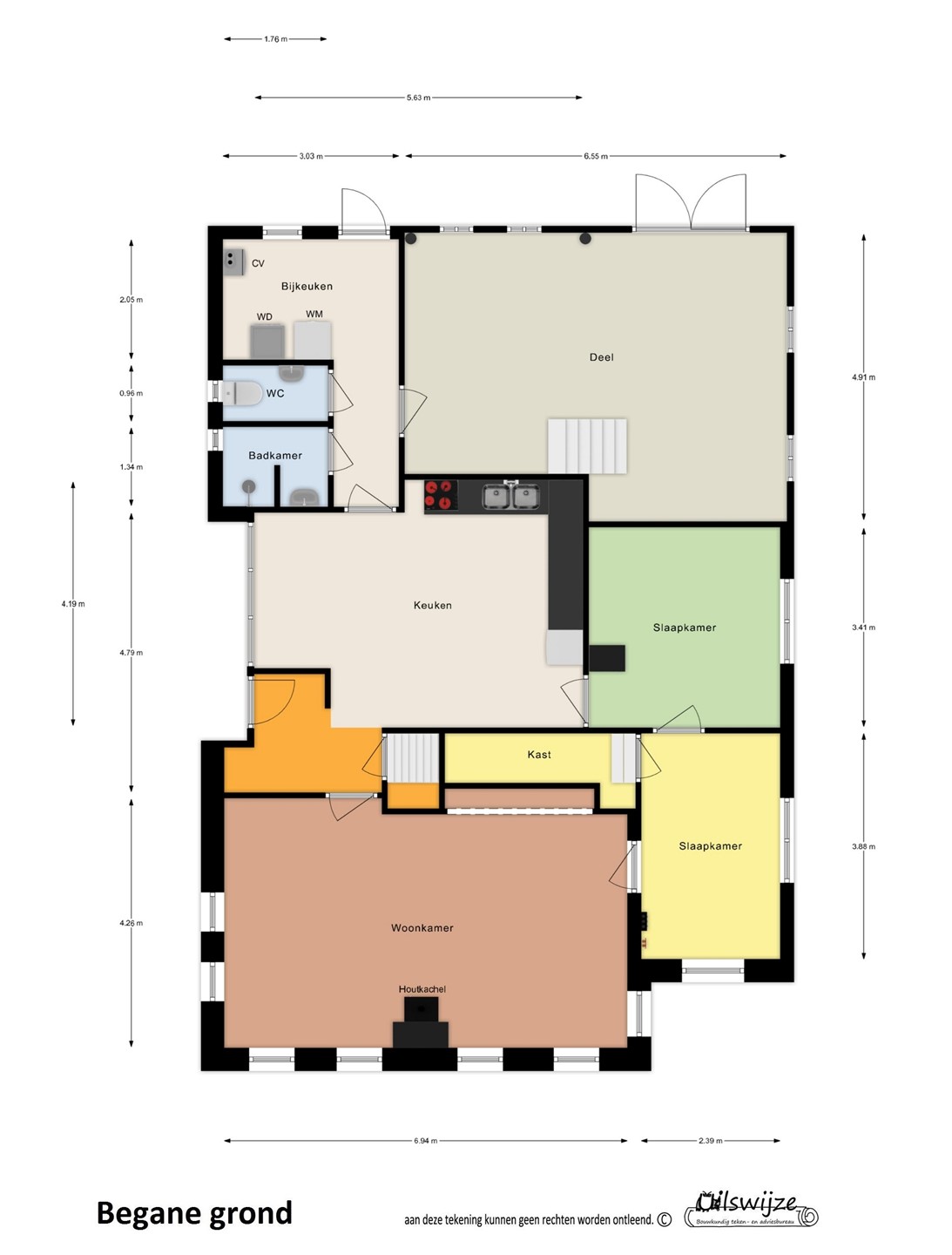 Voorgevel en linker zijgevel zijn v.v. nieuwe buitenmuren.