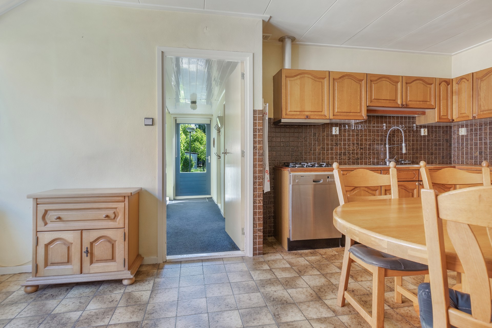 Entree/hal, garderobenis, kelder (over de gehele breedte van de woning), ruime lichte woonkamer met vaste kastenwand en speksteenkachel, slaapkamer v.v. inloopkast, slaapkamer, woonkeuken met L-vormig keukenblok met diverse inbouwapparatuur: vaatwasser, koelkast, 4-pits gaskookplaat en afzuigkap, achterhal, eenvoudige badkamer v.v. een wastafel en inloopdouche, eenvoudige toiletruimte met staand toilet en fonteintje, bijkeuken met wasmachineaansluiting, CV-ketel en achterdeur, inpandige tuingerichte deel v.v. kunststof tuindeuren en trap naar de 1e verdieping.
