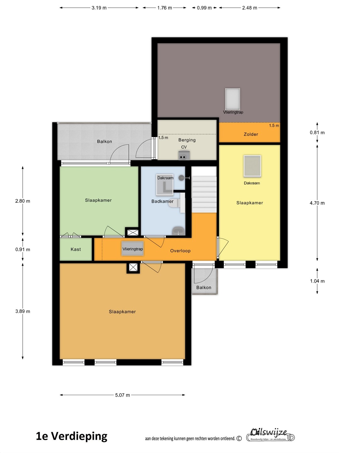 Bergzolder met dakraam, te bereiken via vlizotrap.